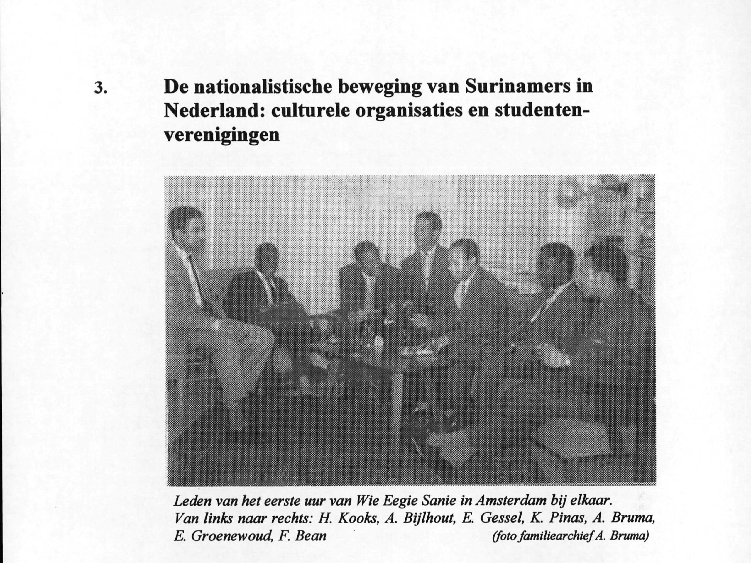 In aanloop naar de onafhankelijkheid droegen uiteenlopende culturele ontwikkelingen, zowel in Suriname als daarbuiten, bij aan het streven naar zelfstandigheid. Een belangrijk voorbeeld is de opkomst van de organisatie ‘Wie Eegie Sanie’, die in Nederland waardering voor het eigene stimuleerde. Dit initiatief waaide over naar Suriname en motiveerde de samenleving zich in te zetten voor onafhankelijkheid.