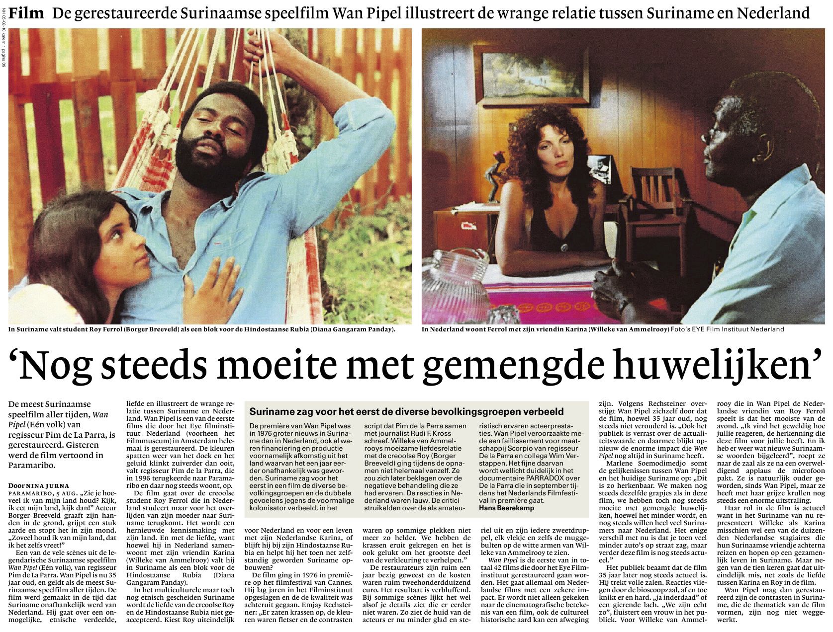 Op 14 juli 1976 ging de film Wan Pipel van regisseur Pim de la Parra in première in theater Star. Het werd een groot succes, met wekenlang uitverkochte zalen in Suriname. In Nederland was de belangstelling daarentegen veel kleiner. De film – inmiddels een klassieker – wordt nog altijd bijna elk jaar vertoond op Surinaamse televisiestations, rond 25 november bij de viering van de Onafhankelijkheid.
