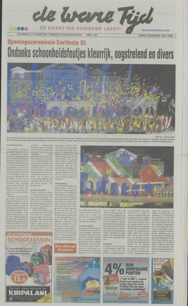 Suriname organiseerde van 16 tot en met 25 augustus 2013 de elfde editie van het Caribisch Kunst- en Cultuurfestival, Carifesta XI. Het thema luidde Culture for development: Celebrating our diversity and promoting the central role of culture in economic, social and human development. De opening begon met een militair en politiekorpsdefilé, gevolgd door dans- en toneelvoorstellingen. ’s Avonds waren er afterparty’s op verschillende locaties in Paramaribo. Het hoogtepunt was de lichtprojectie op het monumentale presidentiële paleis tijdens de vlaggenceremonie van de deelnemende landen. Het was de eerste keer dat in Suriname op zo’n professionele en grote schaal lasertechniek werd toegepast. Toeschouwers reageerden enthousiast en spraken van een spectaculair schouwspel. Aan het festival nemen landen uit CARICOM, UNASUR en de Surinaamse diaspora deel. De grootste delegatie kwam uit Cuba. Gedurende tien dagen vonden in heel het land activiteiten plaats, zoals optredens, tentoonstellingen en ontmoetingen die de diversiteit en eenheid van de regio onderstreepten.